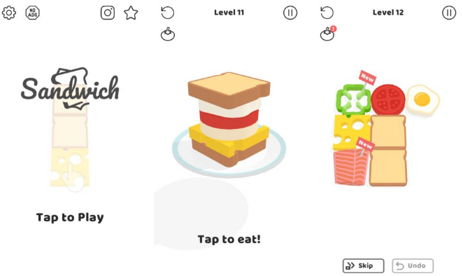 بمجرد الانتهاء ، تأكل شطيرة وكسب نقاط. يجعل إعداد هذه اللعبة من المستحيل تقريبًا الفشل: حتى أن هناك زر تراجع.