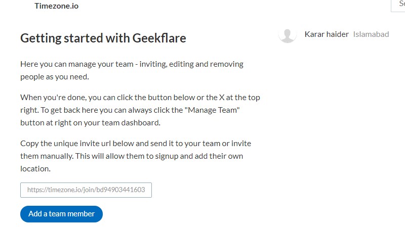 يمكنك تسجيل اسم وصورة كل عضو في الفريق في تطبيق الويب ، وسيقوم Timezone.io بعرضهما في لمحة واحدة.
